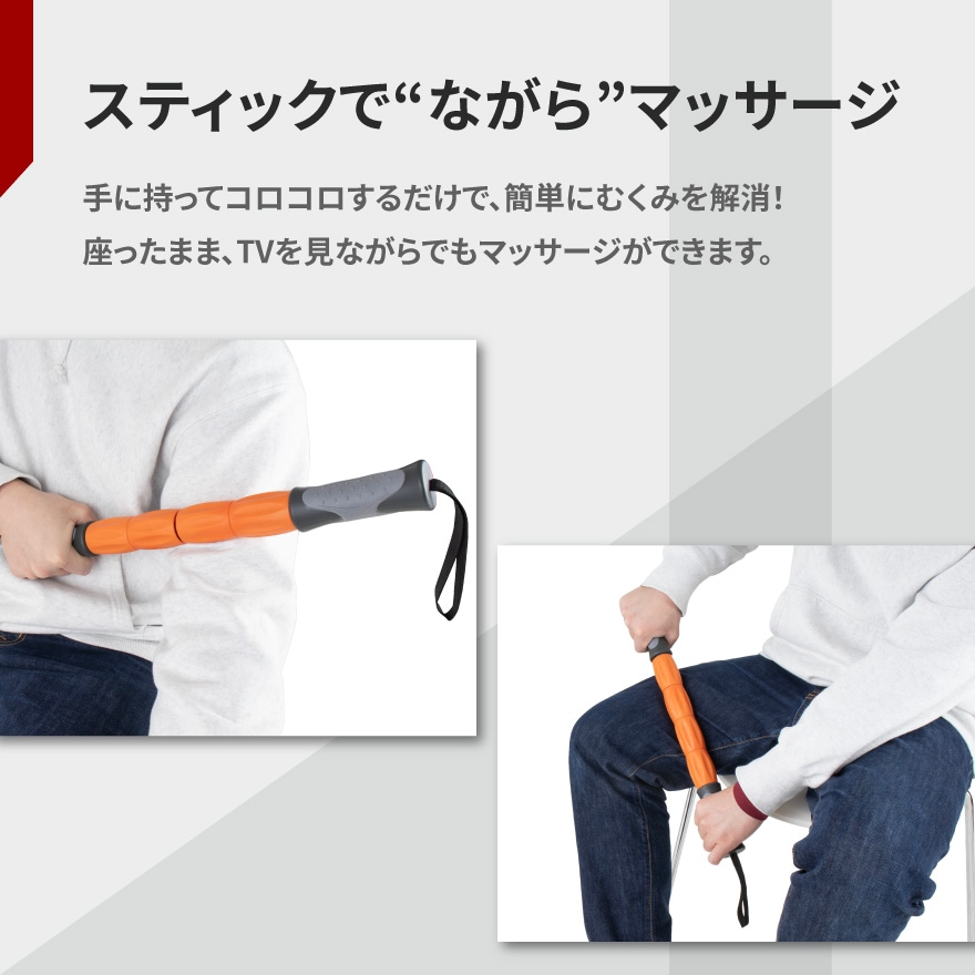 手に持ってコロコロするだけで、簡単にむくみを解消!座ったまま、TVを見ながらでもマッサージができます。