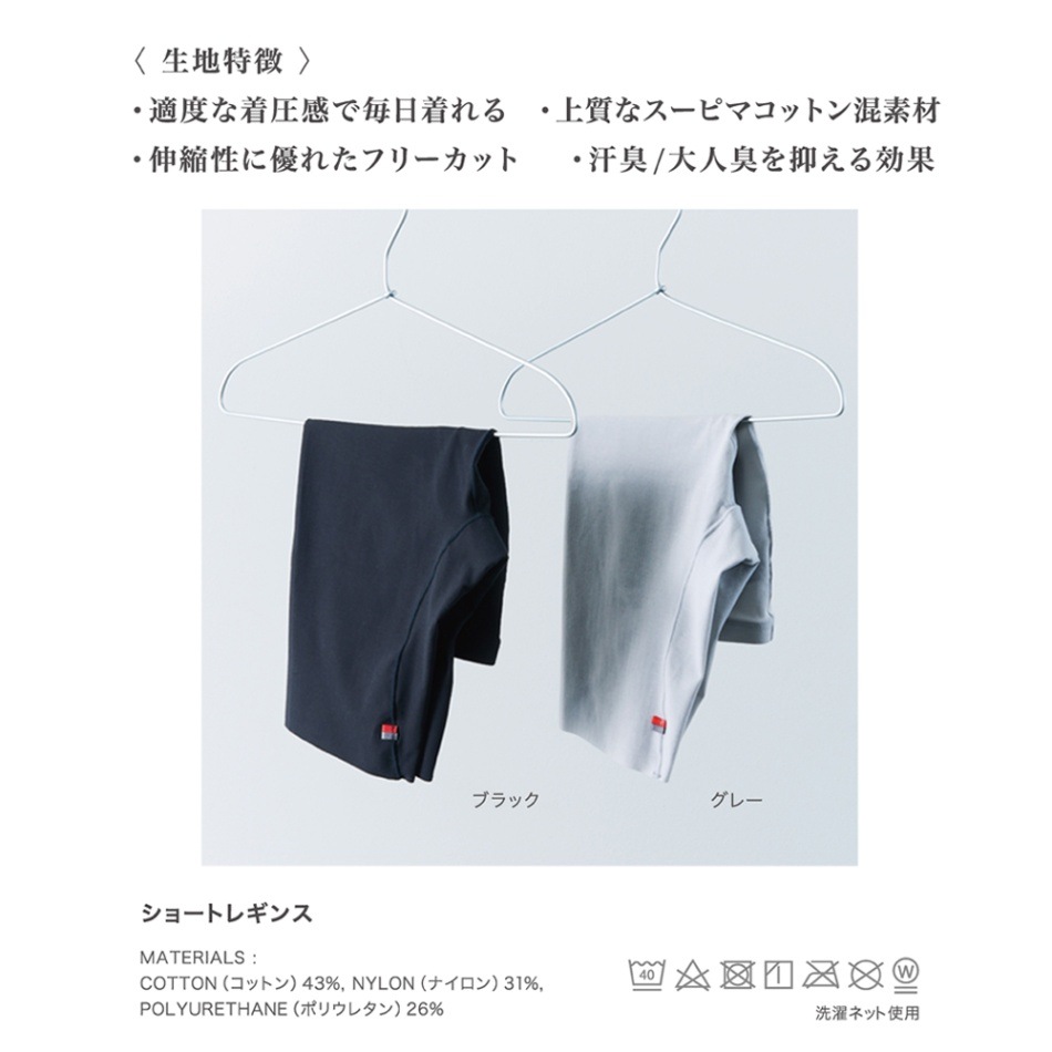 汗消臭機能があり、アウターに響きにくいフリーカット仕様。