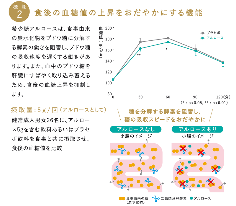 アストレアWだけを摂取した場合、血糖値は上がりません。しかも、食事などが原因で上がる血糖値の上昇をおだやかにする働きがあることも臨床試験で確認されています。