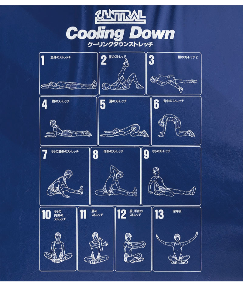 ウォーミングアップ・クールダウンのストレッチのイラストがカバーにプリントされています。